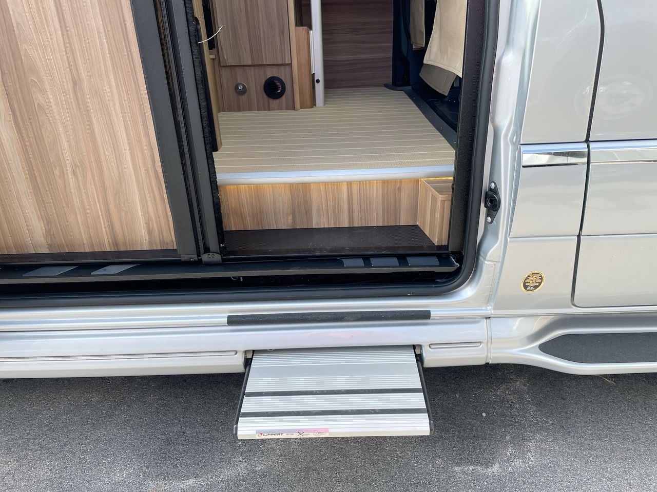 Safety is paramount in the 24 GT, with features like active brake assist, lane-keeping assist, and adaptive cruise control providing peace of mind during your journeys. The power armless awning with auto-retract and exterior LED lighting enhance outdoor living, while the power sliding door and rear screen offer convenience and comfort.
