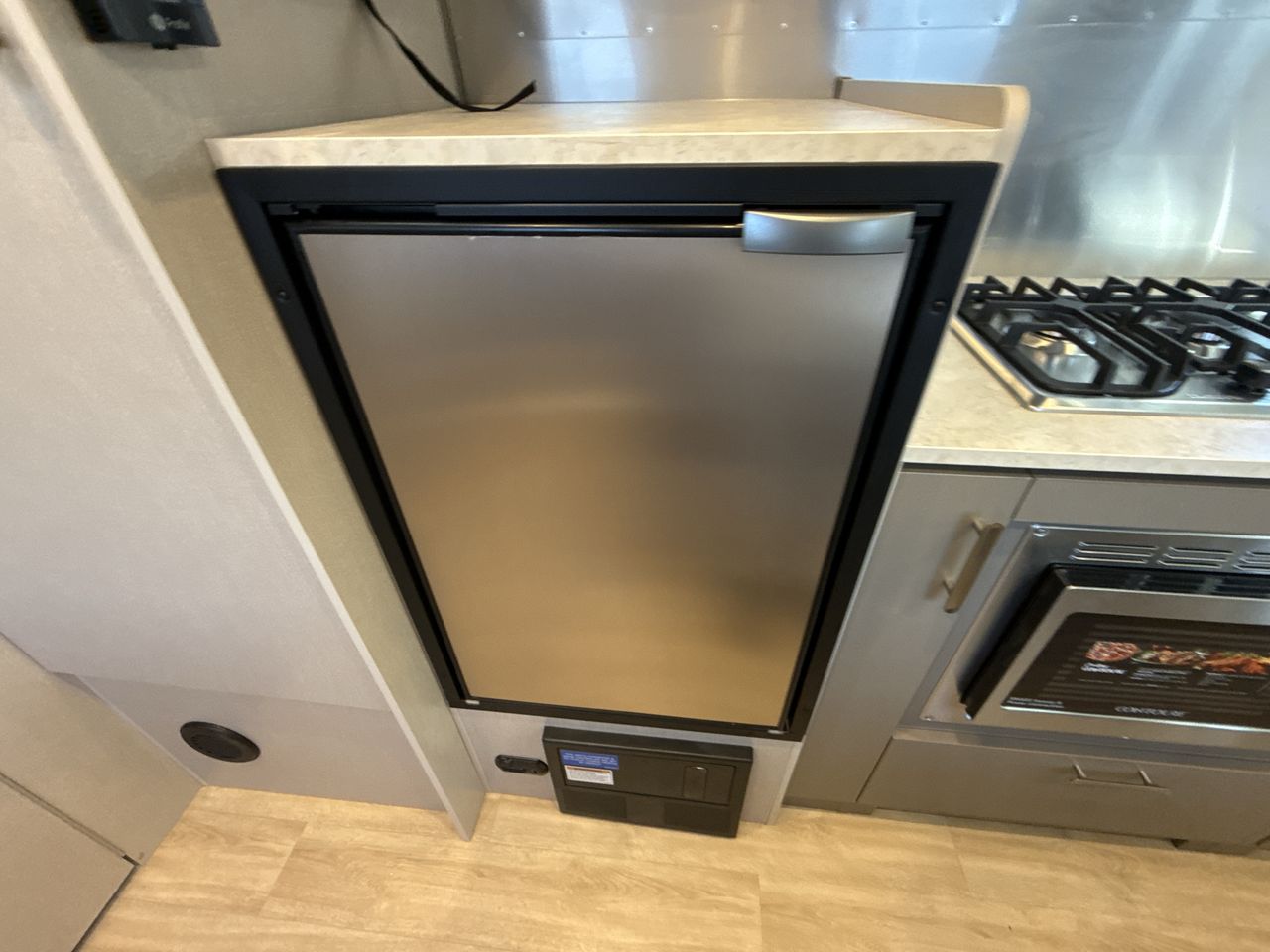 Measuring just over 22 feet in length, the 22FB is ideal for solo travelers, couples, or small families. The interior is thoughtfully arranged to maximize space, featuring a front bedroom with a comfortable queen-sized bed, overhead storage, and a wardrobe closet for your belongings.