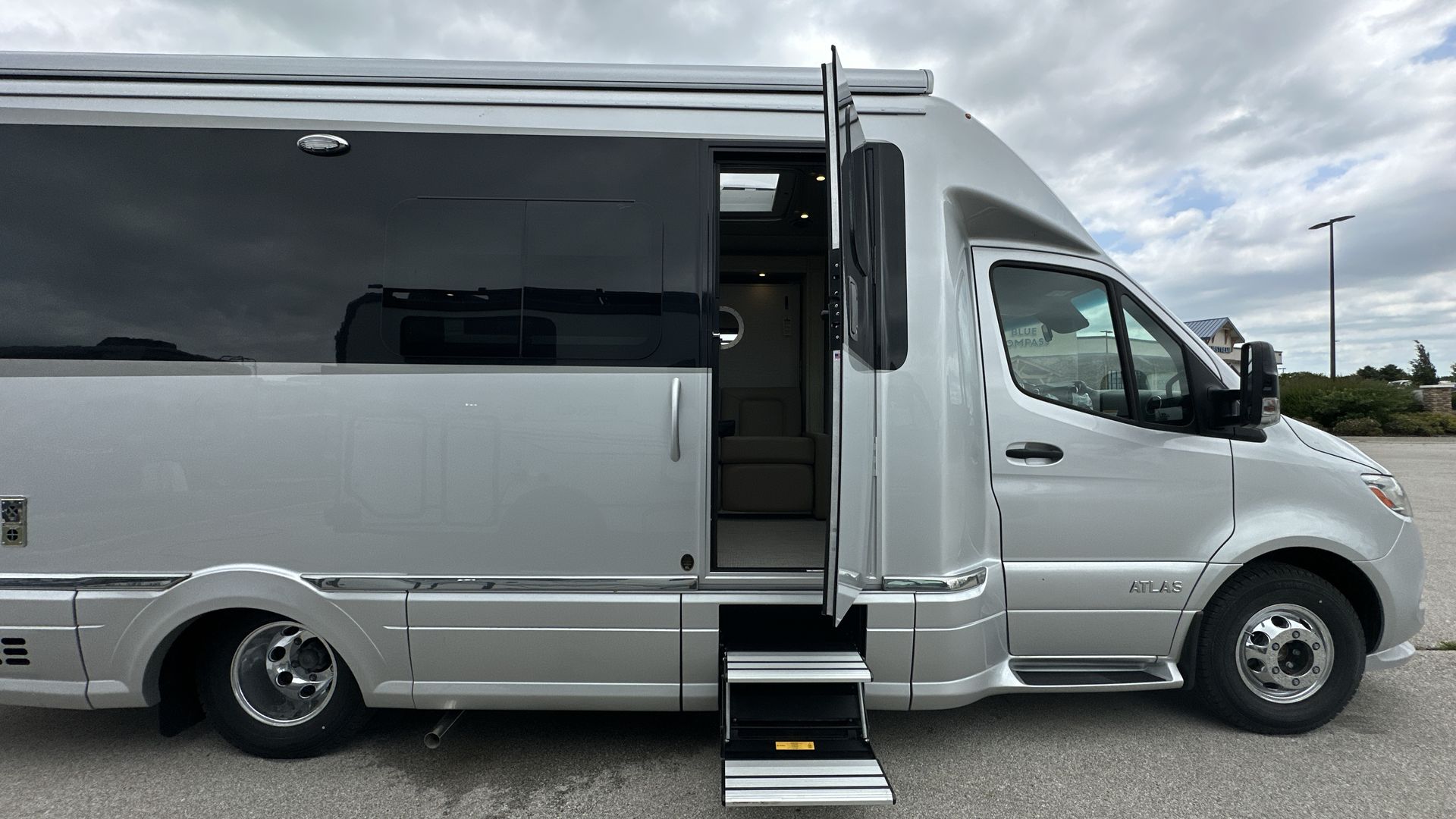 Tech-savvy travelers will appreciate the Atlas's advanced features. The onboard entertainment system includes a 40™ Samsung® LED Smart TV that rises out of the media cabinet via remote control, and a high-quality sound system. For connectivity, the Atlas offers built-in Wi-Fi capability, allowing you to stay connected wherever your travels take you.