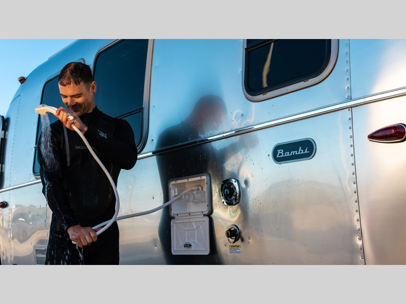 Each Bambi features a dedicated sleeping space, a kitchen with what you need to create meals and snacks on the go, a convertible dinette for lounging and sleeping, plus an onboard bathroom so you don't need to use the campground facilities. Every inch of the Bambi is thoughtfully arranged with the way you will use each area to create maximum and efficient use of the space. You will appreciate the overhead storage with tambour doors for easy access to your stored items, stainless steel appliances, a retractable awning for creating shady outdoor spaces, and the stereo with Bluetooth connectivity and two speakers!
