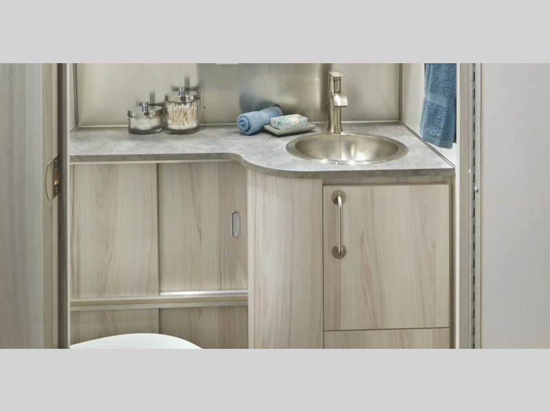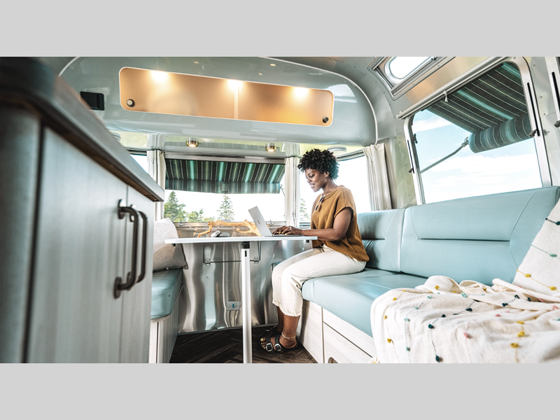 For the perfect balance of comfort and purposeful design, take a look at the International travel trailers by Airstream. The interior features cool tones and seashore textures for a more calming feel, and Airstream's iconic aluminum exterior is sure to turn heads as you travel across states.