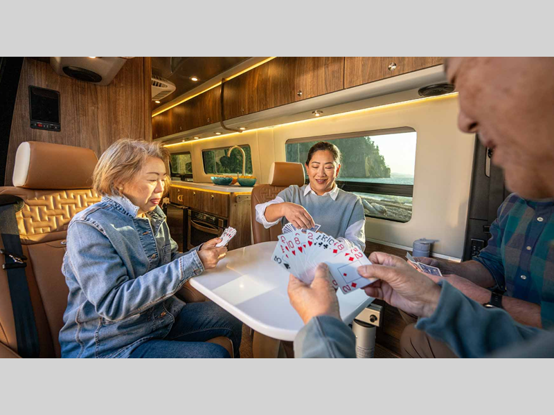 The durable body protection coating, all-terrain tires and black running boards make it easier than ever to go off the beaten path, plus there is a 400-watt solar system for off-grid capabilities. Traveling is made hassle-free with a wet bath on board, along with kitchen amenities and generous storage space for your personal belongings, camp gear, food and more!